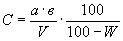а - концентрация вещества в анализируемом растворе пробы, найденная по градуировочному графику, мкг/мл; в - общий объем раствора пробы, мл; V - объем воздуха, отобранного для анализа и приведенного к стандартным условиям, л (см. приложение 1); W - потеря в массе при высушивании, %;