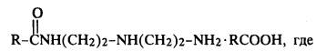 R - радикал с 12-20 атомами углерода. М. м. 840,0 Соль N-ацил-(С12-С20)-диэтилентриамина и жирных кислот таллового масла (АДЭТА ЖКТМ) - вязкая жидкость темно-коричневого цвета со слабым амминным запахом, Ткип. - 250 °С. Хорошо растворяется в этиловом спирте, в нефтепродуктах, не растворяется - в воде. В воздухе находится в виде паров и аэрозоля. ПДК в воздухе - 2 мг/м3. Характеристика методаМетодика основана на взаимодействии солей АДЭТА ЖКТМ с тропеолином 00 с образованием комплекса желтого цвета, экстрагировании его из водного раствора хлороформом с последующим фотометрическим определением при А 415 нм. Отбор проб проводится с концентрированием в этиловый спирт и на фильтр. Нижний предел измерения в анализируемом объеме пробы - 5 мкг. Нижний предел измерения в воздухе - 1 мг/м3 (при отборе 12,5 л воздуха). Диапазон измеряемых концентраций в воздухе от 1 до 30 мг/м3. Определению не мешают: жирные кислоты таллового масла, диэтилентриамин, мешает - соль 1-β-аминоэтил-2-алкил-(C12-С20)-имидазолина и жирных кислот таллового масла. Суммарная погрешность измерения не превышает ±12 %. Время выполнения измерения, включая отбор проб, - 3 ч. Приборы, аппаратура, посуда