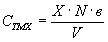 Составляют систему уравнений (1) с двумя неизвестными концентрациями ТМХ (X) и M (Y). Подставляют полученные значения коэффициентов поглощения и, решая систему уравнений относительно «X» и «Y» получают формулы (2) для расчета концентраций ТМХ (X) и М (Y) в мкг/мл при совместном присутствии в поглотительном растворе Проведение измерений После отбора воздуха фильтр помещают в химический стакан, заливают содержимым поглотительного прибора и, после перемешивания оставляют на 10-15 минут. Выливают раствор в мерный цилиндр на 25 мл и доводят до 20 мл этанолом, которым предварительно ополаскивают поглотитель и химический стакан с фильтром. Измеряют оптические плотности полученного раствора при 236 нм (Дλ1) и 280 нм (Дλ2) относительно кюветы со спиртом. Если Дλ1 и (или) Дλ2 > 1,2, то разбавляют пробу в N раз этанолом и повторяют измерение Дλ1 и Дλ2. Расчет концентрацийПолученные значения оптических плотностей сравнивают между собой. Если Дλ1 / Дλ2 ≥ 12,0, то концентрацию М считают равной нулю, а концентрацию ТМХ в поглотительном растворе «X» (в мкг/мл) рассчитывают по формуле (3) Еλ1ТМХ - постоянный коэффициент (Еλ1ТМХ = 0,0776 л/мг · см). Если Дλ1 / Дλ2 ≥ 1,3, то считают равный нулю концентрацию ТМХ, а концентрацию М в поглотительном растворе «Y» (в мкг/мл) рассчитывают по формуле (4) Еλ2М - постоянный коэффициент (Еλ2М = 0,0124 л/мг · см). Во всех остальных случаях в поглотительных растворах присутствуют оба продукта, концентрацию которых в мкг/мл рассчитывают по формулам (2). Концентрации в воздухе ТМХ «СТМХ» и М «СМ» (в мг/м3) рассчитывают по формулам (5) и (6). X и Y - концентрации ТМХ и М соответственно, рассчитанные по формулам (2), (3) или (4) в мкг/мл; в - общий объем пробы, мл (20 мл); N - число разбавлений пробы спиртом; V - объем воздуха, отобранного для анализа и приведенного к стандартным условиям, л (см. приложение 1). Методические указания разработаны ВНИИОС, г. Новокуйбышевск. Приложение 1Приведение