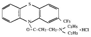М. м. 430,9 2-трифторметил-10 (3-диэтиламино-пропионил-фенотиа-зина гидрохлорид) - фторацизин. Белый кристаллический порошок с Тпл. - 156,5-159 °С. В воде мало растворим. Растворим в этаноле, легко растворим в хлороформе. В воздухе находится в виде аэрозоля и паров. Обладает общетоксическим действием. Рекомендуемый ОБУВ в воздухе - 0,1 мг/м3. Характеристика методаМетод основан на хроматографировании вещества в тонком слое сорбента на пластинках «Силуфол» и денситометрировании хроматограмм при длине волны 268 нм. Отбор проб проводят с концентрированием на фильтр и в этанол. Нижний предел измерения вещества в анализируемом объеме пробы - 2,0 мкг. Нижний предел измерения вещества в воздухе - 0,05 мг/м3 (при отборе 100 л воздуха). Диапазон измеряемых концентраций в воздухе от 0,05 до 1,5 мг/м3. Метод специфичен в условиях производства. Определению не мешают: толуол, хлористый водород. Суммарная погрешность измерения не превышает ±20 %. Время выполнения измерения, включая отбор проб, - 1 ч 20 мин. Приборы, аппаратура, посуда
