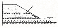 Примечания: 1. Обозначения: ГМ - геотекстильный нетканый материал; Т - продолжительность периода подтопления; γ3 - плотность заполнителя; Нв - максимальная высота волны; V - допустимая скорость течения; d - диаметр проволоки габиона. 2. * - отмеченные значения указаны на начальный период эксплуатации и период после окончания формирования растительного покрова - значения в скобках. 3. ** - представлены рекомендуемые значения для геотекстильных нетканых ГM, используемых в качестве постоянных элементов - защитных прослоек (фильтров) в конструкции укрепления (требования п.п. 3, 7.1 должны соблюдаться) 4. *** - ограничения по продолжительности периода подтопления по п.п. 1, 3 - до 30 суток, по п. 2 - до 70 суток (6 суток в летний период), по п. 5 - до 20 суток. 5. Значения Rp, εр, О90, Кф - по примечанию 1 к табл. 3.2, Р - прочность (усилие) при продавливании (приложение 1Б), Дк, Рк - показатели сопротивляемости местным повреждениям (п. 3.3.6) - для нетканых термоупрочненных или дополнительно термоупрочненных иглопробивных ГМ из полиамидного, полиэфирного сырья σд = 0,25 Rр / δ, полипропиленового σд = 0,1 Rр / δ. В любом случае величина σд не должна превышать значения KRp / δ; (К - см. п. 3.2.4). 7.2.6. Подбор числа прослоек арматуры выполняют по формуле