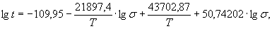 где t - время, ч; T - температура, K; σ - напряжение в стенке трубы, МПа Рисунок В.7 - Эталонные кривые длительной прочности материала труб PVC-C Тип I