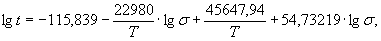 где t - время, ч; T - температура, K; σ - напряжение в стенке трубы, МПа Рисунок В.12 - Эталонные кривые длительной прочности материала труб PVC-C Тип II