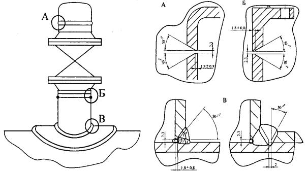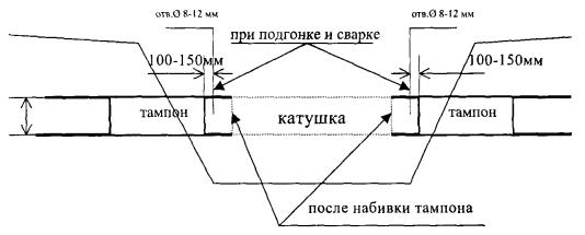 Схема разделки кромок и сварных швов «катушки» и труб нефтепровода Величина зазора