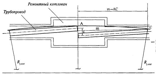 где Ас, m - длина откапываемого трубопровода, м. Rу.изг. - минимальный радиус упругого изгиба, м; с - величина несоосности, м. Таблица Е.1 Длина откапываемого (или незасыпанного) участка трубопровода в зависимости от диаметра трубопровода, минимального допустимого радиуса упругого изгиба и величины несоосности стыкуемых концов трубопровода при выполнении технологического захлеста