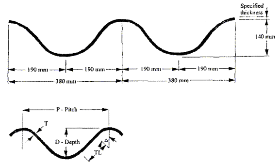 Рис. П.1.3. Профиль гофрированного листа: толщина листа 2,75 - 7,0 мм