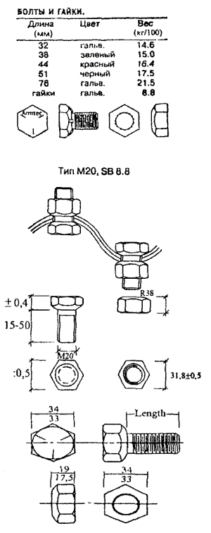 Рис. П.1.4. Профиль гофрированного листа: толщина листа 3,5 - 7,1 мм; углы изгиба гофра 49,75º - 50,43°; прямая вставка 110,78 - 106,15 мм ПРИЛОЖЕНИЕ 2КРЕПЕЖНЫЕ ИЗДЕЛИЯ ДЛЯ СБОРКИ МЕТАЛЛИЧЕСКИХ ГОФРИРОВАННЫХ ТРУББолты для продольных и поперечных стыков должны быть класса прочности 4.6 и класса 5.6 согласно требованиям СНиП II-23-81. Для труб, применяемых в районах с расчетной минимальной температурой наружного воздуха ниже минус 40°С, болты следует назначать класса прочности 8.8. Размеры болтов принимаются по ГОСТ 7798-70*, размеры гаек - по ГОСТ 5915-70*. Резьба болтов и гаек метрическая с крупным шагом согласно ГОСТ 24705-81. Длина болтов должна быть не менее 35 мм и назначаться исходя из количества и толщины соединяемых гофрированных листов. Длина участка без нарезки (у головки болта) должна быть меньше суммарной толщины двух стыкуемых элементов и шайб на 2 - 3 мм. Для болтов стыковых соединений следует применять шайбы специальной формы - квадратные плосковыпуклые, квадратные плосковогнутые (рис. П.2.1) с цилиндрическими опорными поверхностями, радиуса кривизны, обеспечивающего плотное прилегание шайб к поверхностям впадин и гребней волн стыкуемых гофрированных листов. Рис. П.2.1. Шайбы для болтов (размеры в миллиметрах): а - плосковогнутые; б - плосковыпуклые; d - диаметр отверстия в шайбе (согласно ГОСТ 11371-68*); В - размер квадратной шайбы, принимаемый равным наружному диаметру стандартной круглой шайбы (согласно ГОСТ 11371-78*); d1 - не менее 3; d2 - не менее 2 При сферических опорных плоскостях болтов и гаек шайбы не применяются. Болты, гайки и шайбы должны иметь антикоррозионное защитное покрытие (80 мкм) из цинка ЦЗ по ГОСТ 3640-75. Болты и гайки зарубежных фирм, допускаемые к применению Для сборки многолистовых гофрированных секций используются гальванизированные болты диаметром 19 мм, изготовленные из стали, подверженной специальной температурной обработке в соответствии со спецификацией А 449 (Американские Стандарты по Испытанию Материалов, рис. П.2.2). Нижняя поверхность головки болта равномерно закруглена и не требует специальной подгонки. Все гайки устанавливаются либо изнутри, либо снаружи конструкции, за исключением случаев, когда сборочными чертежами предписано иначе. Рис. П.2.2. Болты и гайки зарубежных фирм ПРИЛОЖЕНИЕ 3МЕТОДИЧЕСКИЕ РЕКОМЕНДАЦИИ ПО ГИДРАВЛИЧЕСКИМ РАСЧЕТАМ МЕТАЛЛИЧЕСКИХ ГОФРИРОВАННЫХ ВОДОПРОПУСКНЫХ ТРУБ БОЛЬШОГО ДИАМЕТРАП.3.1. Общие положения Металлические гофрированные трубы - гибкие бесфундаментные конструкции, работающие во взаимодействии с грунтом по системе «грунт-труба». В нашей стране приняты в настоящее время следующие типовые размеры гофров: 130´32 мм, 150´50 мм, а в зарубежной практике применяются следующие размеры: 67,77´12,7; 100´22; 152,4´50,8; 200´55 и 400´150 мм (длина и высота гофра). Гофрированные трубы отличаются от технически гладких существенно большей шероховатостью, что связано с наличием на внутренней поверхности гофров. Среднее значение коэффициента шероховатости n = 0,025 - 0,03, а при наличии гофров больших размеров (более 152,4´50,8 мм) или наносов в лотковой части трубы коэффициент шероховатости может достигать 0,04. Наличие повышенной шероховатости приводит к существенно большим критическим уклонам гофрированных труб по сравнению с технически гладкими, значение которых в гофрированных трубах достигает 0,02 - 0,03. Поэтому для предотвращения снижения водо