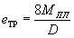 25×103 где D - диаметр, м. Интенсивность действующего горизонтального давления е не должна превышать предельно допускаемое на трубу давление еТР e £ eТР. (П.8.1) Интенсивность предельно допускаемого (из условия трехпроцентной деформации номинального диаметра) давления еТР следует определять по формуле