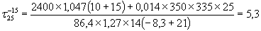 При сравнении расчетной «R» и опытной «Rо» прочности бетона за время остывания бетона t могут представится три случая. 1. R > Rо. При таком соотношении бетон приобретает принятую в расчет прочность раньше, чем произойдет его охлаждение до расчетной температуры tк. В данном случае расчет целесообразно повторить, принимая более высокие значения температуры tк, что позволит избежать введения в бетон большого количества добавки, определить возможное время распалубливания конструкции и ускорить оборачиваемость опалубки. 2. R = Rо. При этом соотношении к моменту остывания до температуры tк бетон приобретает требуемую прочность, а количество добавки следует назначить по принятой в расчете температуре tк. 3. R < Rо. В этом случае бетон замерзнет раньше, чем приобретет заданную прочность. В этом случае необходимо утеплить конструкцию, чтобы получить требуемую прочность к моменту замерзания бетона. С этой целью по формуле (1) определяется значение К, которое позволит свести расчет ко второму случаю. Найденное по расчету время остывания бетона t сопоставляется с опытными данными, полученными в соответствии с указаниями п. 1.4 «в». При этом сравнивается прочность бетона, принятая в расчете (R) с прочностью бетона, полученной на основании опытных данных (Rо). Rо находится по экспериментальному графику, составленному на объекте строительства. График нарастания прочности бетона с добавкой НН при 10 °С (1), 5 °C (2), 0 °C (3), -5 °C (4), -10°C (5) и -15 °С (6) ПРИМЕР ОПРЕДЕЛЕНИЯ РАСЧЕТНОЙ ТЕМПЕРАТУРЫ ТВЕРДЕНИЯ БЕТОНА Необходимо определить расчетную температуру твердения бетона класса В25, приготовленного на гранитном щебне и портландцементе марки М400 с расходом 350 кг/м3, если средняя температура воздуха в текущей декаде по данным месячного прогноза ожидается -21 °С, а скорость ветра 4 м/с. В качестве противоморозной добавки выбран нитрит натрия. Конструкцию с модулем поверхности 14 м-1 намечается возводить в опалубке 6го типа по рисунку 1, а температура бетонной смеси после уплотнения будет около 10 °С. Согласно п. 1.5 настоящей карты критическая прочность для бетона класса В25 составляет 25 %. Тогда подставляем известные из условия задачи величины в формулы 1 и 2 и, принимая tк = -15 °C согласно п. 1.5, находим, что