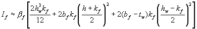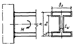 ПРИЛОЖЕНИЕ 3Примеры расчета сварных соединенийПример 1. Расчет сварного соединения с угловыми швами на действие момента в плоскости, перпендикулярной плоскости расположения шва. Консоль двутаврового профиля прикрепляется угловым швом путем обварки по периметру профиля. Размеры поперечного сечения показаны на рис. 14 прил. 3. Изгибающий момент М = 75 кН · м. Материал консоли - листовая сталь марки 15ХСНД (Ryn = 345 МПа, Run = 490 МПа). Сварка выполняется полуавтоматом в углекислом газе проволокой диаметром 2 мм марки Св-08Г2С в нижнем положении (Rwf = 215 МПа, βf = 0,9). Коэффициенты условий работы γwf = γc = 1. Необходимо определить катет углового шва. Решение. Сечение, по которому следует производить расчет сварного соединения для указанного сочетания стали, сварочной проволоки и способа сварки в соответствии с табл. 2 настоящего Пособия, - по металлу шва. Расчет должен выполняться по формуле (122) главы СНиП II-23-81: M / Wf ≤ Rwf γwf γc. Момент сопротивления расчетного сечения периметра швов Wf = If / ymax, где момент инерции расчетного сечения