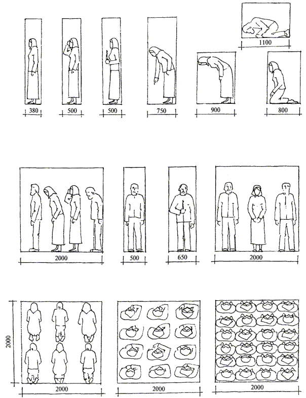 Строго каноничным является лишь отделение алтаря иконостасом, а приведенные варианты объемно-планировочных решений определяются церковно-канонической традицией, функциональными особенностями, конструктивным решением и градостроительной ситуацией размещения храма. Размеры нефов, наличие столбов зависят от строительных материалов и конструкций. Традиционные для православных храмов кирпичные конструкции стен и сводов определяли лимит пролета арок и сводов в пределах 6 - 9 м. Использование в конструкции покрытия монолитного железобетона или металлоконструкции в сочетании с торкретбетоном дает значительно больше возможностей в организации внутреннего пространства храма, в том числе бесстолпного. Наличие столпов в традиционном типе крестово-купольного храма обогащает его пространственную организацию, выделяет центральную, наиболее значимую часть храма, наполняет пространство храма символами. Однако бесстолпные храмы более просторны, в них богослужение могут беспрепятственно созерцать все молящиеся. Здания приходских и монастырских храмов, а также отдельно стоящих храмов, расположенных в общественных комплексах, следует проектировать, как правило, одноэтажными или с цокольным этажом (стилобатом), предназначенным для размещения помещений богослужебного и вспомогательного назначения. Под средней частью храма с цокольным этажом может размещаться алтарь крестильного храма, не имеющий литургического назначения. Кафедральные и монастырские соборы могут быть двухэтажными. При этом над алтарными частями храмов нижнего этажа не должно быть помещений иного назначения, кроме алтаря. Под алтарями храмов верхнего этажа могут располагаться как алтари нижних храмов, так и некоторые помещения вспомогательного назначения, например, ризницы. Домовые церкви и церкви, встроенные в общественные здания учреждений медицинского и социального назначения, учебных заведений и пр. должны размещаться, как правило, на верхних этажах или таким образом, чтобы над алтарем не было помещений иного назначения. Минимальная высота помещений от пола до потолка малых храмов должна составлять не менее 3 м. На хорах, во вспомогательных помещениях и в подвале высота помещений может быть уменьшена до 2,5 м. В домовых церквях вместимостью до 100 человек высота всех частей церкви может быть одинаковой и соответствовать высоте этажа здания, в который встроена домовая церковь. При проектировании объем зданий храмов рекомендуется принимать на одно место вместимости, м3: приходских храмов............................ 4 - 6 соборов............................................... 6 - 8 Примечание. В зависимости от объемнопланировочного решения возможно увеличение или уменьшение указанных величин. Главный вход в храм располагается, как правило, с западной стороны. Дополнительные входы могут быть с южной и северной сторон. В I, II, III климатических районах и IIIг климатическом подрайоне при главном входе следует предусматривать тамбур. При дополнительных входах, служащих в качестве эвакуационных, тамбуры допускается не предусматривать. Ширина тамбуров должна превышать ширину дверного проема не менее чем на 0,15 м с каждой стороны, а глубина тамбуров должна превышать ширину полотна двери не менее чем на 0,2 м. Входы в храмы, проектируемые для строительства в климатических подрайонах IA IБ, IГ, должн