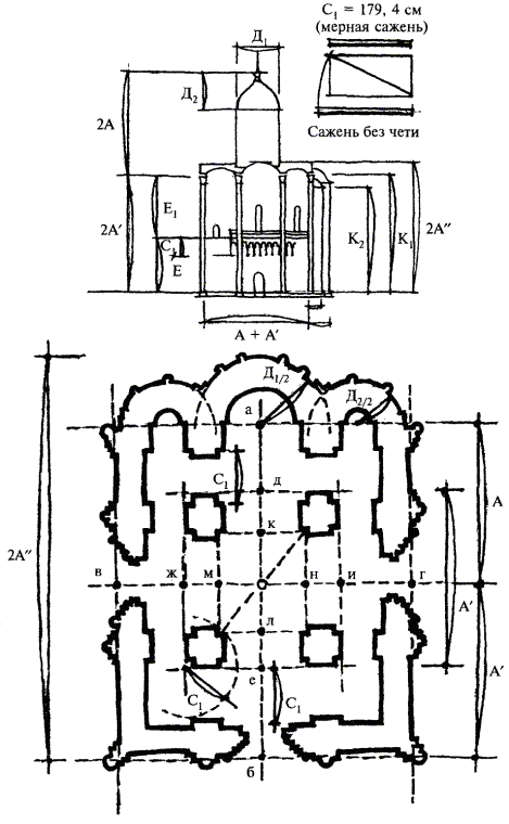 кратными соотношениями. Архитектор И.Ш. Шевелев, выполнивший анализ церкви