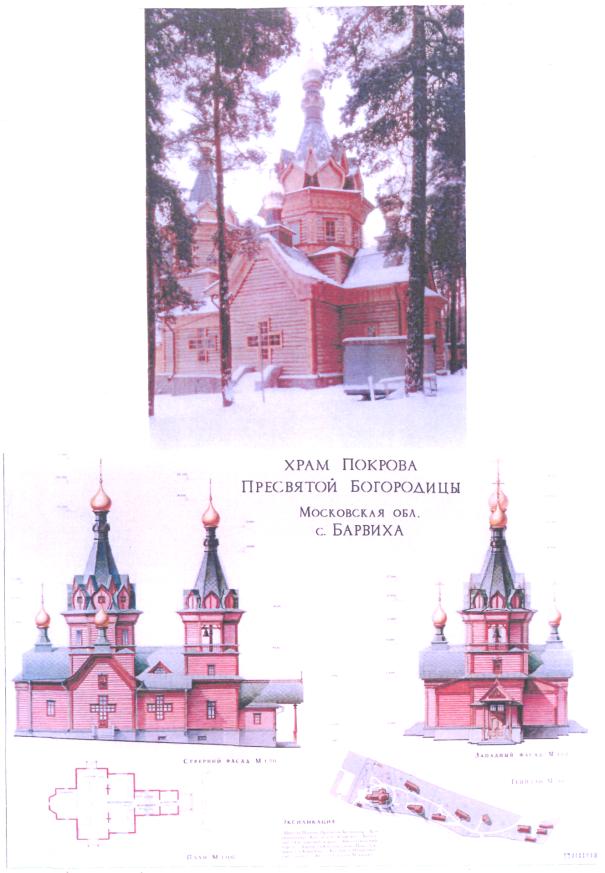 1. Проект храма в дер. Верхняя Санарка Челябинской области 2. Проект храма в честь иконы Божией Матери «Взыскание погибших» в г. Челябинске 3. Макет храма в пос. Шахунья Белгородской области 4. Проект дома причта 5. Проект храма Паисия Великого в селе Михайловская Слобода Раменского района Московской области 6. Проект водосвятной часовни в Сретенском монастыре в Москве Приложение 2ТЕРМИНЫ И ОПРЕДЕЛЕНИЯАрхитектурно-строительные термины храмовых сооружений Алтарь (лат. - высокий жертвенник) - отделенная иконостасом и находящаяся на возвышении главная часть храма, предназначенная для священнослужителей, в которой находится престол; место совершения таинства евхаристии; символизирует собой небесную сферу, Рай. Амвон (греч. - восходить) - выступающая в центр храма часть солеи перед Царскими вратами, предназначенная для чтения Евангелия, проповедей и причащения во время Литургии. Архиерейский амвон - четырехугольное возвышение в центре храма, на которое во время богослужения ставится архиерейская кафедра. Апсида - ориентированная на восток часть алтаря полукруглой или многогранной формы, перекрытая полукуполом или сомкнутым полусводом (конхой). В трехчастном алтаре может предназначаться собственно для алтаря, для ризницы и для жертвенника. Барабан - венчающая часть храма, несущая купол или многогранный сомкнутый свод и имеющая цилиндрическую или многогранную форму. В большинстве случаев имеет оконные проемы. Глухой барабан без оконных проемов называется шеей. Глава - наружная часть купольного перекрытия барабана, как правило, в форме шлема или луковицы. Горнее место - восточная часть алтарной апсиды, где в кафедральных соборах на возвышении располагается место епископа. Гульбище - открытый или крытый обход, окружающий здание храма. Диаконские двери - две одностворчатые двери, расположенные в боковых частях иконостаса (в нешироких иконостасах диаконская дверь делается с одной северной стороны). Жертвенник - помещение, расположенное в северной части алтаря, где на столе-жертвеннике совершается первая часть Литургии - Проскомидия; - четырехугольный стол, расположенный слева от Горнего места в алтаре. Журавец - элемент каркаса главы, крепящийся к центральному столбу, несущему Крест, в виде деревянного шаблона с абрисом поверхности вращения главы. Закомара - полукруглое или килевидное завершение верхней части одного прясла стены храма, обычно соответствующее форме внутреннего свода. Звонница - отдельно стоящее, пристроенное к храму или надстроенное над храмом или его западной частью открытое сооружение или стенка с проемами, предназначенными для подвешивания колоколов. Иконостас - преграда (перегородка), отделяющая алтарь от остального пространства храма, заполненная 1 - 5 рядами икон, крепящихся к горизонтальным тягам-тяблам с завершением наверху Распятием. Кафедральный собор - городской храм, в котором находится кафедра епископа. Киворий - навес над престолом в алтаре в виде купола, опирающегося на столбы и завершающийся Крестом. Устраивается в соборах и крупных храмах. Клирос - боковая часть солеи, предназначенная для церковного клира (певчих хора и чтецов). Кокошники - декоративные ложные закомары полукруглой или килевидной формы с богатой профилировкой или - профилированные арки с заполненным полем, иногда с заостренным