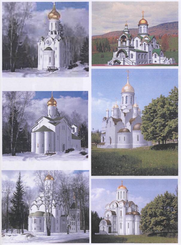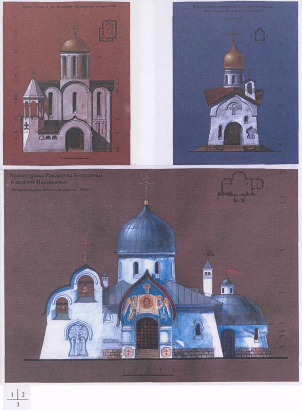 1. Проект церкви в пос. Балакирево Владимирской области 2. Проект храма-памятника Дмитрия Солунского в пос. Снегири Истринского района Московской области 3. Проект храма Рождества Богородицы в дер. Надовражъе Истринского района Московской области