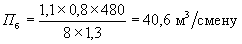 где q - емкость бункера Квр - коэффициент использования оборудования по времени (0,8) Кзу - коэффициент учета зимних условий (равный поправочному коэффициенту к нормам времени. Принят условно 1,3) тогда поток укладки бетонной смеси в смену составит