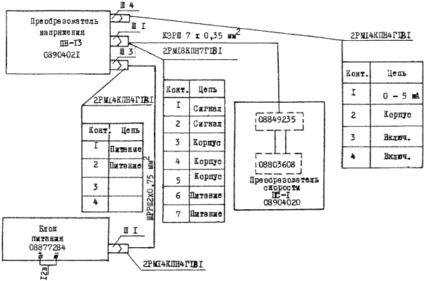 При расхождениях более 5 см выполняют третий прием. Если квантовый дальномер применяют для измерения коротких расстояний (менее 100 м), то наблюдения ведут только на частотах f1 и f2. Работы на конце измеряемой линии4.21. Работы на конце измеряемой линии начинают с установки и центрирования треноги призменного отражателя над точкой, для которой определяется расстояние. 4.22. Устойчивая работа призменного отражателя зависит от числа отражающих призм и определяемого расстояния. При дальностях до 1 км устойчивая работа возможна при одной отражающей призме, до 1,5 км - трех отражающих призмах, в интервале 1,5 - 2 км - шести отражающих призмах. 4.23. Отцентрированный призменный отражатель наводят по визирной метке на объектив квантового дальномера. 4.24. При работе с девятью отражающими призмами на измеряемых дальностях свыше 2,2 км отражатель достаточно наводить с точностью ±20°. 4.25. Отражатель снимают и переносят на новое место для очередного измерения только после появления на основной точке (стоянке дальномера) белого флага. На период снятия отсчетов на основной точке рядом с дальномером должен висеть красный флаг. 5. ИЗМЕРЕНИЕ СКОРОСТЕЙ ТЕЧЕНИЙУсловия при измерении скоростей5.1. При измерении скоростей течений скоростемером типа "Зонд" необходимо учитывать влияние металлического корпуса судна на электромагнитные свойства скоростемера. При дюралевом корпусе промерной лодки и расположении датчика скорости на расстоянии 0,1-0,15 м от борта никаких искажений в показаниях прибора нет. 5.2. В зависимости от ширины водотока и изменчивости поверхностных струй течений измерение скоростей потока выполняют по-разному. Измерение скоростей на плессовом участке с плавным течением без резких поворотов и излучин рекомендуется производить в дискретном режиме. В этом случае отсчет скорости по шкале регистратора скоростемера снимают и записывают на ленте профилографа одновременно с оперативной отметкой плановой угловой засечки положения промерного судна. Частота отсчетов соизмеряется с частотой угловых засечек. При измерении скоростей на перекатном участке со значительной косоструйностью целесообразно работать в автоматическом режиме. Для перевода скоростемера в автоматический режим тумблер на корпусе регистратора приводят в положение "Внешн." и подключают вилку разъема кабеля от скоростемера к приставке самописца эхолота. Дополнительная приставка к профилографу типа "Язь"5.3. Для одновременной записи показаний глубин и скоростей на одной ленте применяют дополнительную приставку к профилографу типа "Язь". Она работает в комплексе с эхолотом-профилографом типа "Язь" и измерителем скорости типа "Зонд". На ленте эхолота-профилографа с помощью приставки попеременно с соотношением 1:3 записываются данные скорости течения и глубины. Запись осуществляется пером-самописцем на электротермической бумаге. 5.4. На ленте самописца (рис. 4) при автоматическом режиме записи измерения скорости круговым пером прожигаются линия записи глубин 1, линия записи измерения скорости 2 и оперативные отметки 3 с соответствующими пояснительными надписями. 5.5. Электронная приставка к профилографу совмещает запись начала нулевого отсчета при измерении скорости течений с начальным отсчетом при измерении глубин. 5.6. Для того, чтобы можно было записать на ленте самописца и с