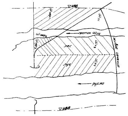 пойменные живые сечения на план. При X = 1200 м коэффициент