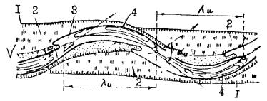 излучины: шаг λu = 620 м, длина S = 1200 м