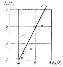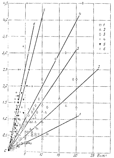 За основу при совмещении выбран контактный отпечаток хорошего качества съемки 1976 г. (4) с контрастным изображением участка, расположенным в центре кадра. С помощью УТП путем 4* увеличения на планшете подготовлена схема участка в масштабе 1:15000. Совмещение полученной схемы с изображениями со снимков 6, 2, 7 и 3 не выявило изменений на участке, так как за этот период между съемками уровни Н и расходы воды Q не превышали среднемаксимальных значений. По отдельным фрагментам были выполнены проверочные совмещения в масштабе 1:5000. Эти совмещения подтвердили, что на участке за период 1975-1978 гг. (до паводка) обрушения берегов не превышали 5 м (смещение линий обрушаемых берегов менее 1 мм). По наземным наблюдениям, обрушения на участке в этот период составили 1,0-3,0 м/год. В паводок 1978 г. произошли обрушения бровок берегов до 7 м. Эти данные использованы для построения зависимости на рис. 13. Рис. 13.