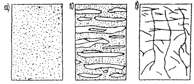 1. Состав и строение мерзлого грунтаГрунты всех видов называются мерзлыми, если они имеют нулевую или отрицательную температуру и содержат в своем составе лед. Грунты называются вечномерзлыми, если они находятся в мерзлом состоянии в продолжение многих (от трех и более) лет. В состав мерзлого грунта входят минеральные частицы, лед, вода, воздух. Величина, форма и взаимное расположение минеральных частиц пор и ледяных включений, входящих в состав грунта, формируют характерную криогенную текстуру. При описании мерзлого грунта следует различать массивную, слоистую и сетчатую текстуры (рис. 1). Массивная текстура характеризуется наличием в основном порового льда. Слоистая текстура представляет собой чередование ледяных включений в виде прослоек и линз с минеральными прослойками, которые имеют массивную текстуру. Сетчатая текстура формируется ледяными включениями, располагающимися в виде сетки.