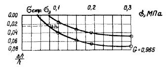 Коэффициент консолидации CV для грунтов малой степени литификации рекомендуется определять путем обработки экспериментальной кривой консолидации методом квадратного корня из времени.*) *) Тейлор. Основы механики грунтов. Пер. в английского. М., Госстройиздат, 1960. 5.7. Для установления величин допускаемой нагрузки на грунт в основании фундаментов должны быть использованы надлежащие величины коэффициентов запаса, в том числе коэффициенты запаса, относящиеся к параметрам прочности грунтов: c и tgφ. С точки зрения определения возможного нарушения прочности грунтов, при оценке допускаемой нагрузки на глинистые грунты малой степени литификации со слабой водопроницаемостью решающим является начальное состояние грунта. При этом условии на стадии проектного задания в расчеты должны вводиться расчетные показатели прочности грунта, определенные в быстрых испытаниях при трехосном сжатии по закрытой схеме и отнесенные к полным напряжениям. При определении расчетных показателей прочности нужно использовать доверительную вероятность 0,95. 5.8. При назначении характеристик прочности грунтов с учетом предпостроечной консолидации, а также в период строительства и в процессе эксплуатации сооружения рекомендуется учитывать одновременность протекания процессов консолидации и ползучести и возможное изменение прочности грунтов во времени. В этом случае следует использовать характеристики, полученные в условиях ползучести для соответствующей плотности грунта. Время, необходимое для достижения определенной заданной степени консолидации, определяется в соответствии с п. 5.6. Особенно важное значение имеет учет ползучести глинистых грунтов при оценке прочности в толще откосов, склонов, в выемках, в засыпках высоких подпорных стен при глубоком залегании глинистых пластов под сооружением. 5.9. При назначении расчетных значений параметров прочности грунтов малой степени литификации следует учитывать инженерно-геологические условия площадки и свойства грунтов, способные влиять на их устойчивость, как-то: тиксотропию, анизотропию, условия строительства, возможные дополнительные нагрузки, вибрации от движения транспорта, работы машин и т.д. Приложение 1Методика определения величины давления, эквивалентного природному давлению на образец грунтаДавление, эквивалентное природному давлению σэ на образец грунта, рекомендуется определять по кривой сжимаемости (компрессионной кривой), построенной на основании испытания в одометре образцов грунта ненарушенного сложения в подводном состоянии при осевом фильтрационном потоке без возможности набухания (под арретиром). Давление на образец передают ступенями, равными 0,005 МПа до начала деформации грунта. Начало деформации грунта фиксируется по отклонению стрелки мессуры на величину, превышающую тарировочную поправку прибора. После установления давления σстр, при котором начинается деформация грунта, груз снимают и кладут первую ступень нагрузки в 2 раза более σстр, которую выдерживают до стабилизации деформации. Опыт на компрессию продолжают по обычной методике. Вычисляют для исследуемого образца грунта начальный коэффициент пористости и степень насыщения. Если степень насыщения грунта меньше 1, то по формуле В.Г. Булычева: