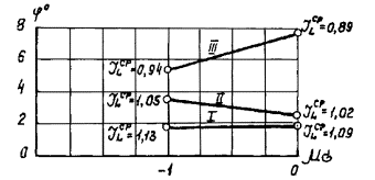 где σ1, σ2, σ3 - главные напряжения. Для этого образцы грунта были разрушены в трехосных приборах при σ2 = σ3 ≤ σ1; μσ = -1 и кручением под гидростатическим давлением, т.е. при условии σ1 = σ2 = σ3 и μσ = 0. Результаты проведенных экспериментальных исследований приведены в табл. 7, а экспериментальные зависимости угла внутреннего трения по Мору от параметра μσ показаны на рис. 14. Угол внутреннего трения исследованных илов и текучепластичной глины незначительно изменяется с изменением параметра μσ, при этом чем меньше угол внутреннего трения, тем меньше влияние параметров Лодэ (μσ). Учитывая, что прочность глинистых грунтов малой степени литификации в основном обусловливается сцеплением, а углы внутреннего трения этих грунтов даже в консолидированном состоянии не велики и, следовательно, будут мало зависеть от параметра μσ, рекомендуется при определении предельного состояния пользоваться условием прочности Мора-Кулона. Рис. 14. Экспериментальные зависимости угла внутреннего трения по Мору глинистых илов от параметра Лодэ. Цифры I, II и III обозначают серию испытаний Таблица 7 Результаты определения прочности глинистых илов при различных параметрах Лодэ