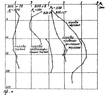 При отсутствии опорных сведений о характере изменения сопротивления пород