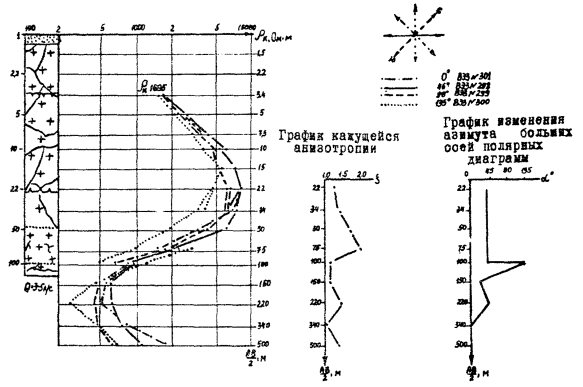 показаны кривые ВЭЗ, полученные при различных азимутах разносов линии АВ, и