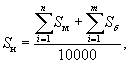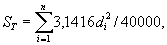 где di - диаметры i-x торцев бревен без коры (дровяных бревен - с корой), целиком вписавшихся в пробную площадь, см; п ≥ 60 - число бревен, целиком вписавшихся в пробную площадь, шт. Полученные значения округляют до 0,01 м2. При попадании в пробную площадь только части торца бревна проводят измерение диаметра и хорды (хорду измеряют по линии стороны пробной площади), и эти данные используют для расчета площади частей торцев. Если в пробную площадь вошла меньшая по площади часть торца бревна, площадь этой части Sм, см2, выбирают по таблице Б.1 (приложение Б). Если в пробную площадь вошла большая по площади часть торца бревна, площадь этой (большей) части торца Sδ, см2, вычисляют по формуле Sδ = 3,1416d2/4 - Sм, (14а) где d - диаметр торца конкретного бревна, большая часть которого входит в пробную площадь, см; Sм - площадь меньшей части торца, находящейся вне пробной площади, по таблице Б.1 (приложение Б), см2. Площадь неполных частей торцев, вошедших в пробную площадь, Sн, м2, определяют по формуле