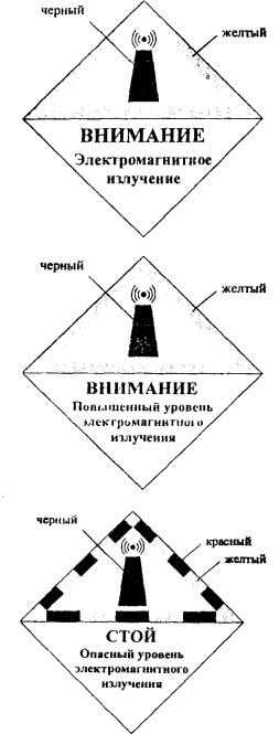 Для определения параметров ИЭМП могут применяться другие средства измерений с характеристиками, аналогичными указанным в табл. П.5.1 и П.5.2. Приложение 6(рекомендуемое) Сигнальные знаки о наличии ИЭМП