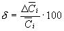 t - коэффициент нормированных отклонений, определяемых по табл. Стьюдента, при доверительной вероятности 0,95. Относительную погрешность определения концентраций рассчитывают: