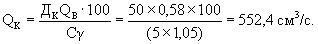 где ДК - доза коагулянта, г/м3; QВ - расход воды через смеситель, м3/с; C - концентрация раствора коагулянта по массе, %; γ - плотность раствора коагулянта концентрации C, г/см3. Плотность раствора коагулянта при заданной его концентрации принимают в соответствии со следующими данными. Концентрация раствора Al2(SO4)3 по массе, % Плотность раствора, г/м3 1................................................................... 1,009 2................................................................... 1,019 4................................................................... 1,04 6................................................................... 1,06 8................................................................... 1,083 10................................................................. 1,105 20................................................................. 1,226 15. Расход раствора коагулянта q через одно отверстие следует определять по формуле q = μω μ - коэффициент расхода, принимаемый равным 0,75; ω - площадь отверстия, см2; h - заданная потеря напора в распределителе (см. п. 13). Определенные по формуле (2) величины расходов раствора коагулянта через одно отверстие при потере напора в распределителе 30 и 50 см приведены в табл. 1. В этой же таблице указаны рекомендуемые диаметры лучей в зависимости от размера отверстий. Таблица 1