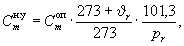 9.4 В зависимости от применяемых методов измерения и расчетных методик определение содержания газовых компонентов производится во влажных или сухих продуктах сгорания. В соответствии с ГОСТ Р 50831-95 массовые Сiт (г/м3) и объемные Civ (% об. или ррm) концентрации веществ следует пересчитывать на стандартные условия, в качестве которых приняты: коэффициент избытка воздуха a = 1,4 в сухих дымовых газах при нормальных условиях (температура 0 °С, давление 101,3 кПа (760 мм рт. ст.)). Под сухими продуктами сгорания подразумеваются дымовые газы, в которых произошла конденсация образовавшихся в процессе горения топлива водяных паров из-за их остывания до температур ниже температуры насыщения. Объем сухих продуктов сгорания определяется по формуле Vсг = V0г - V0H2O + (a - 1)×V0в, (9.3) где V0г - теоретический объем влажных газов, м3/кг (м3/м3); V0H2O - теоретический объем водяных паров, м3/кг (м3/м3); a - коэффициент избытка воздуха; V0в - теоретический объем воздуха м3/кг (м3/м3). 9.5 При совместном сжигании различных видов топлива объем сухих продуктов сгорания определяется в соответствии с СО 34.02.305-98 (РД 34.02.305-98) по формуле Vсг = Vсг1×d + Vсг2×(1 - d), (9.4) где Vсг1 и Vсг12 - объемы сухих дымовых газов, образующихся при сжигании топлив первого и второго видов соответственно, м3/кг условного топлива; d - доля топлива (по теплу) первого вида за отчетный период. 9.6 Для пересчета опытных концентраций на стандартные условия используются следующие формулы: - при пересчете опытных данных (Соп), полученных для сухих газов, на стандартные условия (Сст.у) для сухих газов