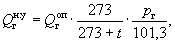где a - коэффициент избытка воздуха в сечении отбора газовой пробы; Vсг = V0г - V0H2O - теоретический объем сухих газов, м3/кг (м3/м3); qг - температура газов в измерительном сечении газохода в случае использования беспробоотборных измерительных систем или температура газов перед газоанализатором в случае отбора пробы продуктов сгорания из газового тракта, °С; рг - давление газов (принимается равным фактическому атмосферному давлению), кПа. 9.7 При отсутствии данных по составу топлива и соответственно по теоретическим объемам воздуха и газов пересчет опытных данных на стандартные условия может быть приближенно произведен по следующим упрощенным выражениям: