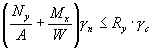 < Rsgc = 133×1 = 133 МПа; прочность поперечных сечений на срез обеспечивается. Проверка прочности продольных сечений По формулам [4], трансформированным к примеру. По формуле (50) на растяжение с изгибом