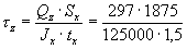 = Qz(1)/A = 162/12,6 = 12,9; tу = Qy(1)/A = 427/12,6 = 33,9;