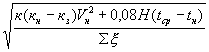 = где ев, ен - упругость водяного пара внутреннего и наружного воздуха; еt - то же, в рассматриваемом сечении; еt = ев - Rо п.вн.сл - сопротивление паропроницанию от внутренней поверхности до границы зоны возможной конденсации (с учетом пограничного слоя); SRп.сл - сумма сопротивлений паропроницанию слоев до рассматриваемого сечения. Rоп - сопротивления паропроницанию всей стены. По указанным формулам определяется упругость водяного пара ei в характерных сечениях конструкции в годовом цикле. Если еt окажется больше максимальной упругости водяного пара Е, то в данном сечении может образовываться конденсат. 7.6.4. Определение параметров воздухообмена в прослойке Движение воздуха в прослойке осуществляется за счет гравитационного (теплового) и ветрового напора. В случае расположения приточных и вытяжных отверстий на разных стенах скорость движения воздуха в прослойках Vпр может определяться по следующим формулам: Vпр = где кн, кз - аэродинамические коэффициенты на разных стенах здания по СНиП 2.0.1.07-85[2]; VH - скорость движения наружного воздуха; к - коэффициент учета изменения скорости потока по высоте по СНиП 2.01.07-85; Н - разности высот от входа воздуха в прослойку до ее выхода из нее; tсp, tн - средняя температура воздуха в прослойке и температура наружного воздуха; Sx - сумма коэффициентов местных сопротивлений (определяется сложением аэродинамических сопротивлений). Другим вариантом определения Vпр, служит формула: gн, gпр - плотности наружного воздуха и в прослойке. Другой вариант определения Vпр по разности давлений воздуха на входе и выходе: DРD = DРвх - DРвых, DРвх и DРвых = Н (gн - gпр) + 0,5 gн×Vн2 (кн - кз)×к, (8) Vпp по формуле: Vпр = При расположении воздушной прослойки на одной стороне здания, можно принять кн = кз. В этом случае, если пренебречь изменением скорости ветра по высоте формула (6) примет вид: Vпр = Формула (7) примет вид: Vпр = gпp - плотность воздуха в прослойке. Указанные формулы применены в технической системе. При этом g имеет размерность кг/м3. В системе СИ в числителе «g» будет отсутствовать, а «g» имеет размерность Н/м3. Из полученных по указанным формулам скорость движения воздуха корректируется с учетом потерь давления на трение по известным из курса «Вентиляция» методам. Расход воздуха в прослойке определяется по формуле: W = Vnp×3600×dпр×gпр, (12) где dпр - толщина воздушной прослойки, м; шириной 1 м, или площадь Fпр, м2. 7.6.5. Определение параметров тепловлажностного режима прослойки Температура входящего в прослойку воздуха tо определяется по формуле: tо = tн + где tв, tн - расчетные температуры внутреннего и наружного воздуха; m - коэффициент, равный 0,26 в системе СИ и 0,3 - в технической. Остальные обозначения даны в [17]. Допускается определять температуру воздуха, входящего в прослойку по формуле to = n×tн, (14) где n = 0,95. Температура воздуха по длине прослойки определяется по формуле: