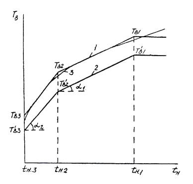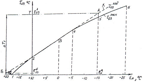 температуре смешанной воды в точке А при tH = -I5 °C на касательной К, проведенной к