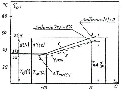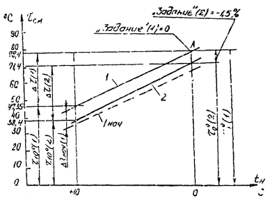 расчетному температурному графику Рис. 10. Примеры определения параметров настройки блока автоматики на заданный график регулирования: I - заданный