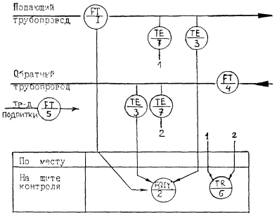Рис. 1. Функциональная схема учета тепла: в числителе - по ГОСТ 21.404-85;