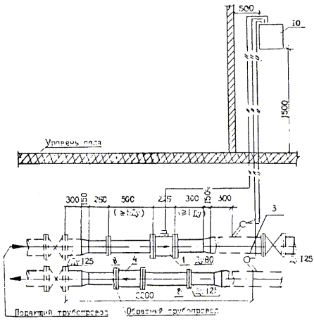 4. Установка узла учета расхода тепла - рис. 3. Водосчетчик ВСГ-32 условно не показан.