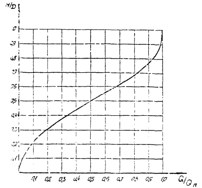 При установленной для данного трубопровода величине Qп по графику (см. рисунок) можно определить расход при любом наполнении.
