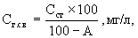 б) определяется допустимая концентрация загрязняющих веществ в смеси производственных и бытовых сточных вод, поступающих на очистные сооружения населенного пункта, Сг.с.в: где А - эффективность удаления загрязняющих веществ на очистных сооружениях населенного пункта, %; принимается по данным работы действующих очистных сооружений либо по данным табл. 2. Полученная величина Сг.с.в не должна превышать концентрацию, допустимую для биологической очистки сточных вод Сб.о.с. Концентрации веществ (мг/л), максимально допустимые для биологической очистки, приведены ниже. Акролеин 0,01 Азолят А 20 Алкомон ОС-2 10 Аллиловый спирт 3 Алюминий 5 Аммонийный азот 100 Анилин 6 Ацетальдегид 20 Ацетон 40 Барий 10 Бензойная кислота 15 Бензол 100 Бутанол 10 Бутилацетат 0,1 Бутиловый спирт 20 Ванадий 20 Винилацетат 100 Висмут 15 Выравниватель А 10 Гидразингидрат 0,1 Гипрохинон 15 Гликозин 30 Глицерин 90 Дибутилфталат 0,2 Диметилацетамид 15 Диметилфенилкарбинол 1 Дициандиамид 100 Диэтаноламин 1 Диэтиламин 10 Железо 5 Жиры растительные и животные 50 Диметиламин 0,7 Закрепитель ЦМ 5 Закрепитель ДЦУ 5 Закрепитель У-2 20 Изобутиловый спирт 100 Кадмий 0,1 Капролактам 25 Карбоксиметилцеллюлоза По БПК Кобальт 1 Ксилол 1 Красители сернистые 25 Красители синтетические 25 Крезол 100 Кротоновый альдегид 6 Латексы 10 Лудогол 100 Малеиновая кислота 60 Марганец 30 Соляная кислота 500 Медь 0,5 Метазин 10 Метанол 30 Метилметакрилат 500 Метилстирол 1 Метилэтилкетон 50 Моноэтаноламин 5 Мочевина (карбамид) По БПК Мышьяк 0,1 Нефть в нефтепродукты 25 Никель 0,5 Олово 10 Полиакриламид 40 Поливиниловый спирт 20 Поливинилацетатная эмульсия 10 Пропанол 12 Пропиловый спирт 12 Резорцин 12 Ртуть 0,005 Свинец 0,1 Селен 10 Сероводород 1 Сероуглерод* 5 Синтетические поверхностно-активные вещества: а) анионные** 20 неионогенные** 50 *Только в связанной форме. **Не относящиеся к биологически «жестким», при величине их биораспада более 80 %. Солесодержание (растворенных солей) 10000 Стирол 10 Стронций 26 Сульфиды* 1 Сурьма 0,5 Тиомочевина 10 Титан 0,1 Толуол 15 Трилон Б 20 Трикрезилфосфат 40 Триэтаноламин 5 Уксусная кислота 45 Уксусно-этиловый эфир 13 Фенол 15 Формальдегид 100 Фталевая кислота 0,5 Хром3+ 2,5 Хром6+ 0,1 Хромолан 10 Цианиды 1,5 Цинк 1 Эмукрил 10 Этанол 14 Этамон ДС-10 10 2-этилгексанол 6 Этиленгликоль 1000 Этилхлоргидрин 5 * Допустимая концентрация сульфидов в канализационных сетях, установленная из условия предотвращения коррозии трубопроводов, составляет 1,5 мг/л. Примечания: 1. Величина допустимой концентрации учитывает содержание веществ в нерастворенной и растворенной форме (в натуральной пробе сточных вод). 2. Интенсивность окраски производственных сточных вод должна быть такой, чтобы окраска исчезала при 16-кратном разведении. Если в результате расчета окажется, что Сг.с.в > Сб.о.с, то следует пересчитать Сст из формулы (2), приняв, что Сг.с.в = Сб.о.с. Примечание. При согласовании с органами по регулированию использования и охране вод следует особо отметить произведенный пересчет и установленную заведомо ниже допустимой из расчета по ПДК величину Сст; в) рассчитывается величина допустимой концентрации каждого загрязняющего вещества, содержащегося в суммарном расходе производственных сточных вод, Сп.с.в: Сп.с.в = (Q/q)(Сг.с.в - Сбыт) + Сбыт, мг/л, (3) где Сбыт - содержание загрязняющего вещества в бытовых сточных водах, мг/л; Q - расход городских сточных вод, м3/сут; q - суммарный рас