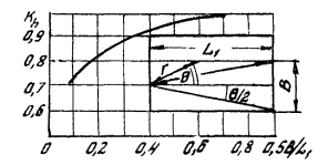 Рис. 1. Коэффициенты Kh снижения высот волн в узком бассейне 3.3. Ввиду