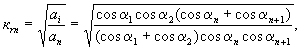 кi, 4.5. Траекторию луча волны рассчитывают по формуле акад. В.В. Шулейкина [8] где dn-1 и dn - глубины на изобатах, для которых проводят расчет; an-1 и an углы между направлением луча волны и нормалью к соответствующей изобате. Луч волны направлен от глубокой воды к берегу, т.е. индекс n - 1 относится к изобате более далекой от берега, чем изобата с индексом n. 4.6. Расчеты траектории луча проводят поэтапно. Этапность введена в расчет для более правильного определения траектории луча, поскольку в натуре она представляет собой плавную кривую. Глубину канала делят на n ступеней (этапов), начиная от полной глубины канала dк = d¢1 до глубины обрушения волн dcr,u = dn. На прямолинейных участках каналов, где луч исходной расчетной волны параллелен изобатам на откосе, для глубины канала расстояние между лучами, рефракцию которых рассчитывают, неопределенно. Поэтому за начальную для расчета глубину d1 принимают не глубину канала dк, а дополнительную начальную глубину d1 < dк, для которой a1 < 90°. Практически за d1 удобно принимать глубину, равную 0,5dк или 3/4ld в зависимости от величин dк и Количество промежуточных этапов между d2 и dn-1 зависит от величины Если требуется знать параметры волн не только на линии их обрушения, но и на каких-либо других глубинах (например, для уменьшения мощности крепления с увеличением глубины или для определения нижней границы крепления), то разбивку на этапы делают с учетом этих глубин. 4.7. По формуле (16) для каждого из n - 1 этапа последовательно определяют углы a и Da, где Da - поворот луча волны за каждый этап. 4.8. Коэффициент рефракции для каждого этапа вычисляют по следующей приближенной формуле: полученной из геометрических построений к планам рефракции двух параллельных лучей, рефрагирующих на прямолинейном откосе. Примечание. Для расчета рефракции волн по работам [9, 10] разработана программа для ЭВМ и передана в ГосФ АП СССР под регистрационным № П007703 [11]. При расчете по ней определяют сразу коэффициент уменьшения высоты волны на мелководье: кмп = кrnкtn, т.е. отдельно находить кtn не требуется. 4.9. При расчете величины кr(n-1) необходимо знать величину поворота луча волны на глубине dcr,u, которая еще не определена, а поэтому берут приближенное значение Dan = Da¢n. Величину Da¢n назначают близкой или равной величине Dan-1, и обычно не превышая 10 - 15° (см. приложение 4 настоящих Методических рекомендаций). По значению Da¢n рассчитывают приближенное значение кr(n-1), т.е. к¢r(n-1). 4.10. Величину dcr,u определяют (согласно п. 21 приложения 1 [1]) методом последовательных приближений. Первое приближение d¢cr,u находят по h¢i(n-1), рассчитанной по формуле (14) с подстановкой в нее коэффициентов кt(n-1) и к¢r(n-1) и по рис. 5 приложения 1 [1]. 4.11. По найденной d¢cr,u определяют второе приближение высоты волны h²i(n-1). Расчет ведут в следующем порядке: 1) по формуле (16) находят Da²(n-1); 2) по формуле (17) - к²r(n-1) и 3) по формуле (14) - h²i(n-1). При правильном выборе величины dn-1 значение h²i(n-1) должно быть равно h¢i(n-1) или незначительно отличаться от него (эта разница не сказывается на величине d¢cr,u). Тогда второе приближение d²cr,u не рассчитывают: dcr,u = d¢cr,u. Если же величина h²i(n-1) существенно отличается от h¢i(n-1), то определяют d²cr,u и расчет повторяют до тех пор, пока не сравняются предыдущее и последующее приближения высот волн. Тогда dcr,u = d²cr,u расчет заканчивают. 4.12. Высоту волны на глубине обрушения находят по формуле (14) с подс