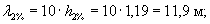 h2% = 1,19 м; l2% = 11,9 м; Т2% = 2,63 с.
