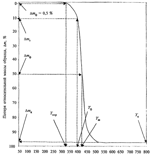 Температура образца, Т, °С к протоколу № _____ от _________________ 200 __ г. Рисунок А.1 - Пример определения значений потери относительной массы образца по ТГ-зависимости