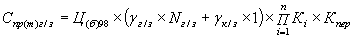 где: Спр(т) - стоимость основных проектных работ в текущих ценах; Ц(б)98 - базовая цена основных проектных работ в уровне цен на 01.01.1998 г. (определяется по таблицам раздела 3);