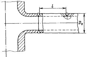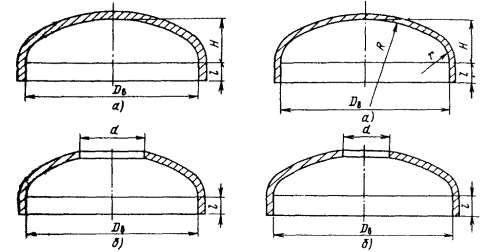 2.2.1.4. Сварные соединения крышек и днищ с обечайками (трубами) и фланцами должны быть стыковыми. Применение угловых и тавровых сварных соединений допускается только при обеспечении возможности контроля их качества неразрушающими методами в объеме, установленном ПК. Минимальная длина отбортовки (расточки) крышек и днищ (рис. 1 и 2) должна соответствовать нормам табл. 1. Таблица 1