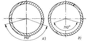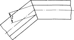 6. Схема секторного отвода Номинальный наружный диаметр принимается равным его значению на концах колена (в местах присоединения колена к другим деталям трубопроводов). 2.3.4. Допускается применение штампосварных колен, изготовленных из двух заготовок, сваренных двумя продольными швами или кольцевым швом, при соблюдении требований п. 2.3.3. 2.3.5. Применение сварных секторных отводов, сварных тройников и переходов допускается для трубопроводов группы В с рабочим давлением до 1,57 МПа (16 кгс/см2) и расчетной температурой до 100 °С, а также для трубопроводов группы С с рабочим давлением до 3,9 МПа (40кгс/см2) и расчетной температурой до 350°С. В сварных секторных отводах угол q должен быть не более 15°, расстояние l - не менее 100 мм (рис. 6). 2.3.6. Расположение отверстий на прямых участках трубопроводов должно удовлетворять требованиям п. 2.2.3. Расположение отверстий на криволинейных участках колен не допускается, за исключением отверстий диаметром, не более 0,1 номинального наружного диаметра колена, но не более 20 мм для приварки штуцеров, труб и бобышек систем контрольно-измерительных устройств в количестве, не более одного отверстия на колено. 2.3.7. В нижних точках каждого отключаемого задвижками участка трубопровода, не имеющего естественного стока за счет уклона, следует предусматривать устройства для дренажа трубопровода. Для трубопроводов с номинальным наружным диаметром до 89 мм, изготовленных из коррозионно-стойких сталей аустенитного класса, указанное требование не является обязательным. Устройство дренажей должно обеспечивать возможность проверки исправности их состояния. 2.3.8. В верхних точках трубопроводов (при отсутствии возможности удаления воздуха через оборудование) для отвода воздуха должны устанавливаться воздушники. На трубопроводах, работающих под вакуумом, воздушники допускается не устанавливать при наличии возможности удаления воздуха при гидравлических испытаниях другим способом. 2.3.9. На дренажных трубопроводах и линиях воздушников контуров с радиоактивным теплоносителем должны устанавливаться два запорных органа, причем для воздушников допускается устанавливать один дроссельный и один запорный орган. Допускается объединение линий отвода воздуха и линий дренажа в общий трубопровод после первых запорных органов с установкой на нем общего запорного органа. Линии отвода воздуха из неотключаемых друг от друга участков оборудования или трубопроводов допускается объединять после дроссельных вентилей. 2.3.10. Все участки паропроводов, которые могут быть отключены запорными органами, для возможности прогрева и продувки должны быть снабжены в концевых точках штуцером с вентилем, а при рабочем давлении свыше 2,15 МПа (22 кгс/см2) и на паропроводах систем группы В независимо от давления - штуцером и двумя последовательно расположенными вентилями - запорным и дроссельным. В случае прогрева участка паропровода в двух направлениях должна быть предусмотрена продувка с каждого конца участка. 2.3.11. Горизонтальные участки трубопроводов должны иметь уклон не менее 0,004 в сторону организованного дренажа. Для паропроводов указанный уклон должен сохраняться при температуре, равной температуре насыщения пара при рабочем давлении. На горизонтальных участках трубопроводов с номинальным наружным диаметром до 60 мм из коррозионно-сто